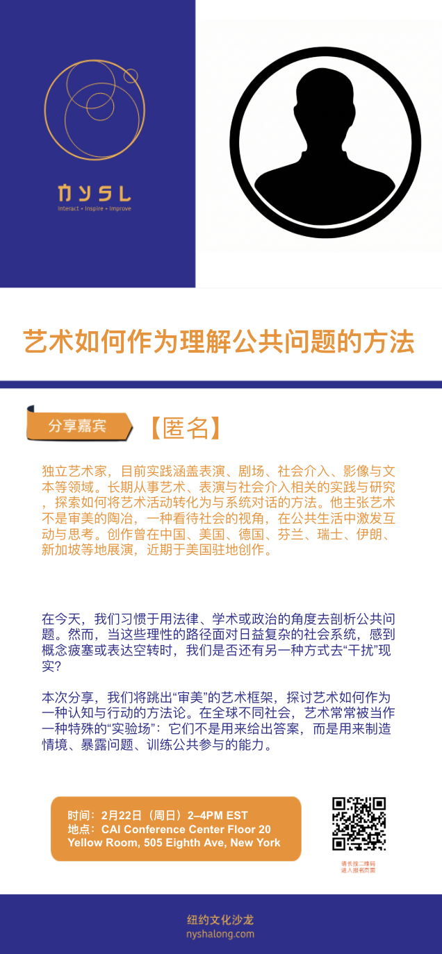 本次分享,我们将跳出“审美”的艺术框架,探讨艺术如何作为一种认知与行动的方法论。在全球不同社会,艺术常常被当作一种特殊的“实验场”:它们不是用来给出答案,而是用来制造情境、暴露问题、训练公共参与的能力。